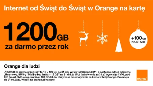 Promocja 1200 GB za darmo przez rok w Orange na kartę